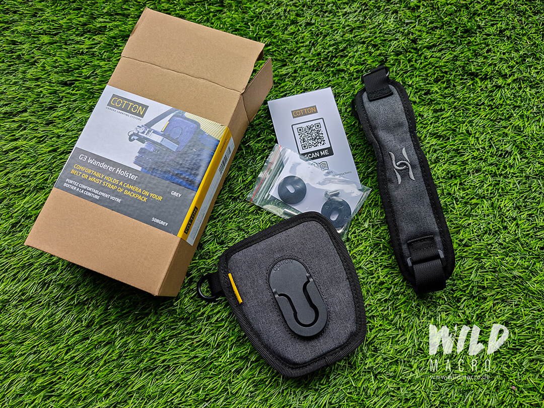 The G3 harness comes in a simple cardboard box, together with a round mount hub made from hard-anodized aluminum, a safety tether to prevent the camera from accidental drops, and a rain cover (for your camera, not the harness).